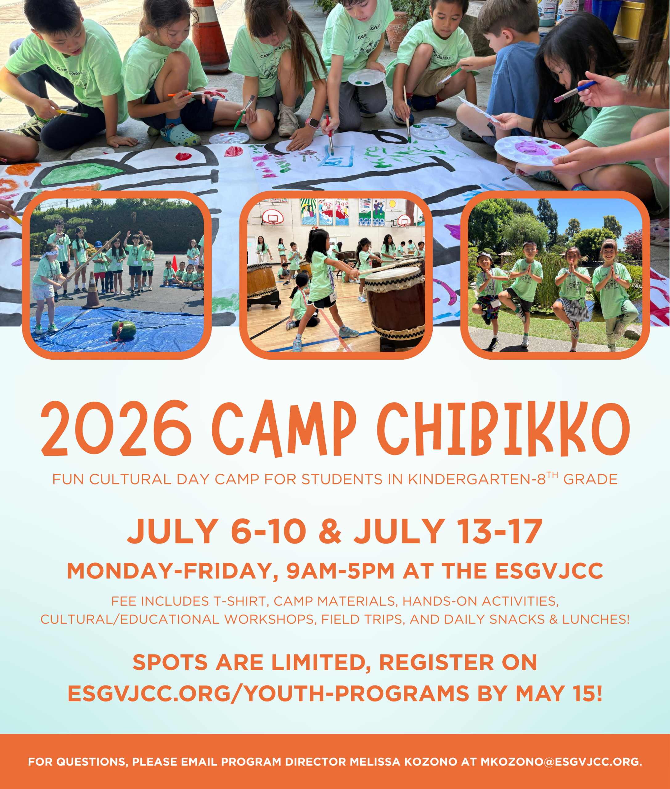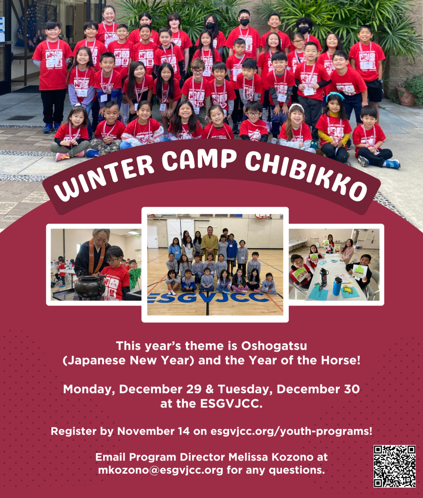 For more information or to sign up for Camp Chibikko, please email Program Director Melissa Kozono at mkozono@esgvjcc.org.